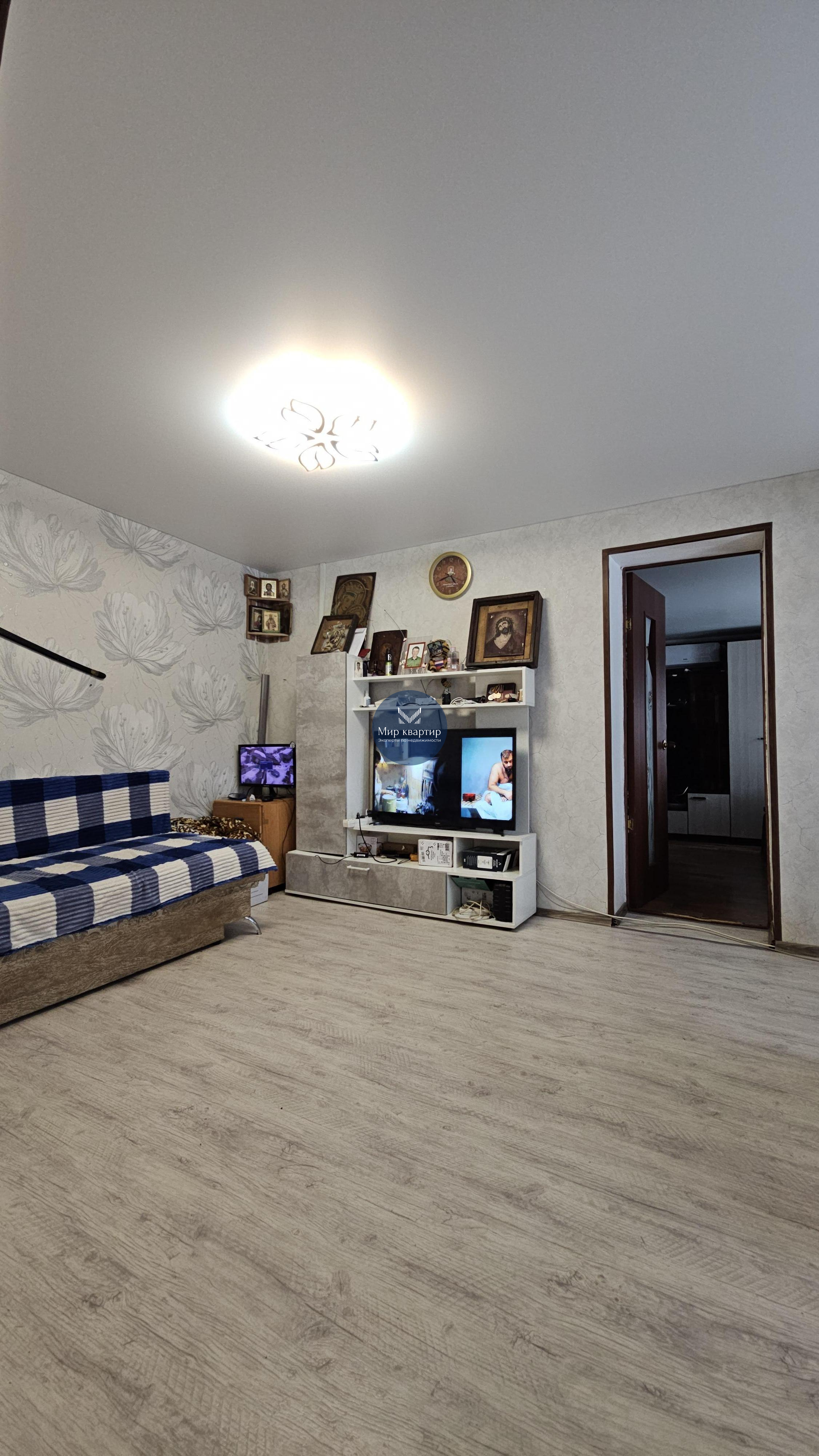 Потолок –натяжной, пол – линолеум,
